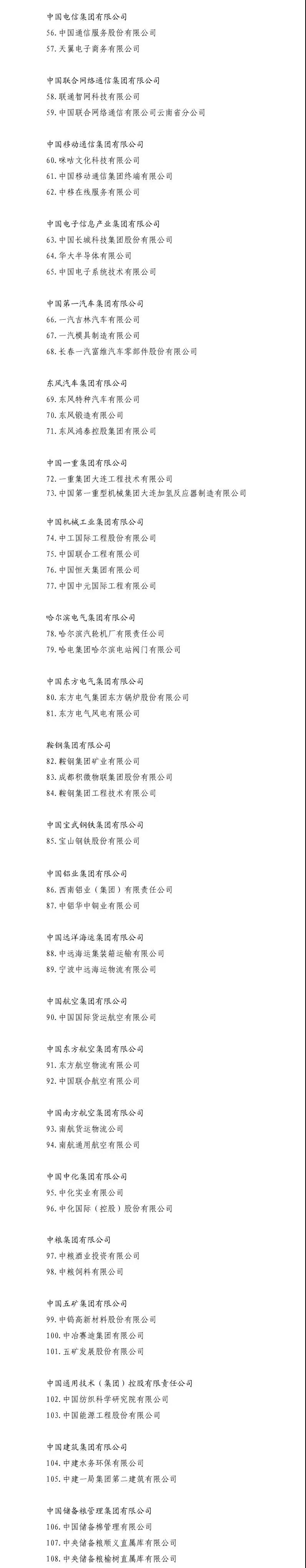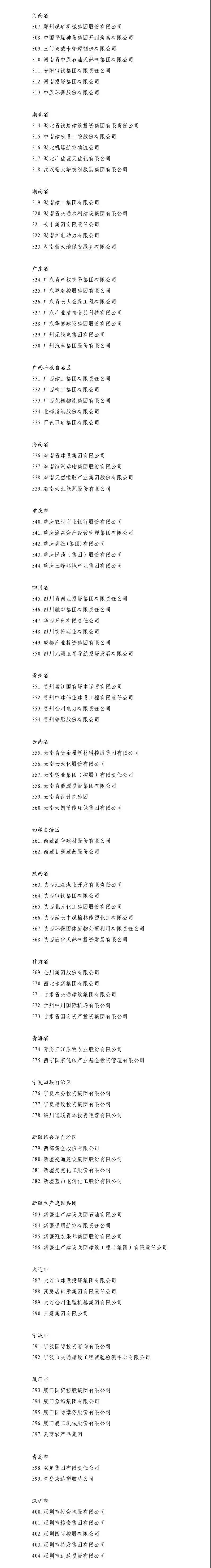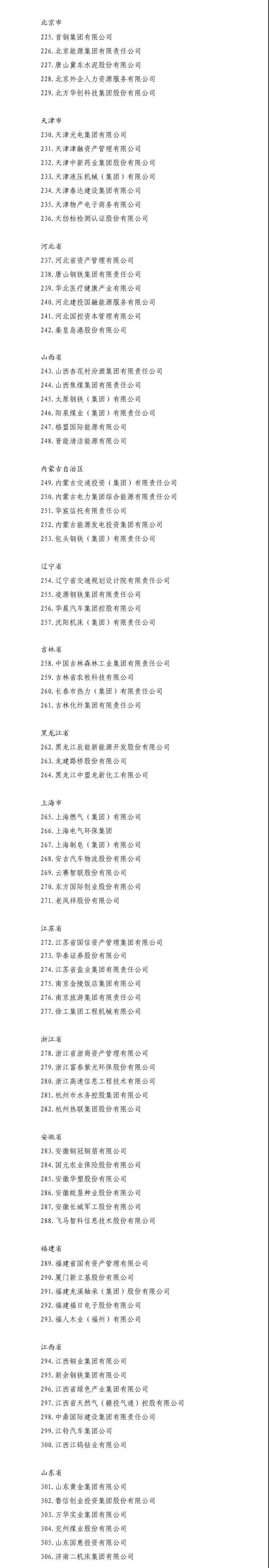 國(guó)企改革“雙百行動(dòng)”企業(yè)名單如下: