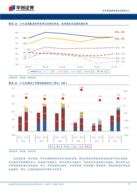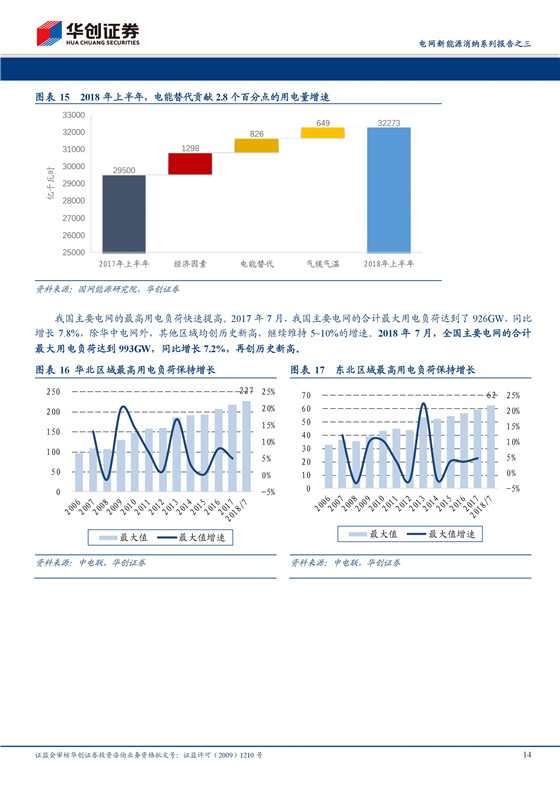 電力系統(tǒng)結(jié)構(gòu)日益復(fù)雜,調(diào)節(jié)能力亟待提升。2018年上半年,全社會用電量同比增長9.8%,2017、2018年7月份最高電網(wǎng)負(fù)荷均保持了7%以上的同比增速。電網(wǎng)規(guī)模日益擴(kuò)大,同時新能源發(fā)電裝機(jī)量繼續(xù)保持高位。華東區(qū)域最高電網(wǎng)負(fù)荷在可調(diào)度的非新能源發(fā)電裝機(jī)中的比例已經(jīng)達(dá)到90%,電網(wǎng)調(diào)節(jié)壓力非常巨大。西北、東北區(qū)域2017年底的新能源滲透率分別達(dá)到93%、100%,已達(dá)到丹麥的水平。這些都對我國電網(wǎng)調(diào)節(jié)能力提出了巨大挑戰(zhàn)。
