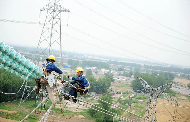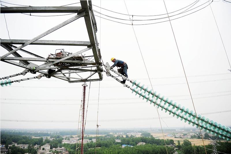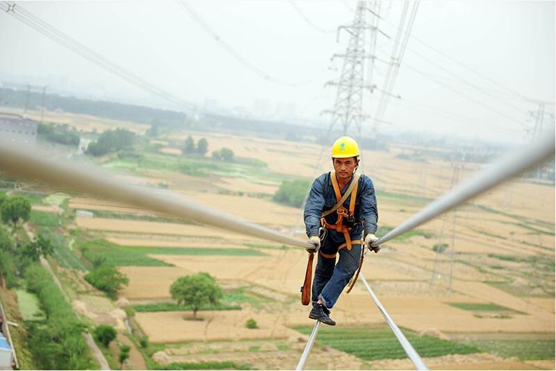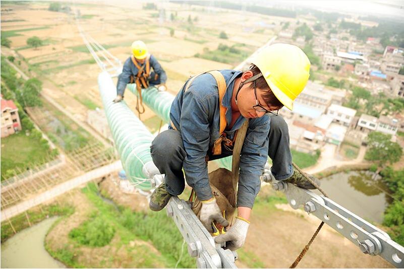 【背景】 在安徽省淮南市洛河鎮(zhèn)境內(nèi),安徽送變電工程公司施工人員在70多米高空進行500千伏輸電線路開斷施工?! ‘斎?,由安徽送變