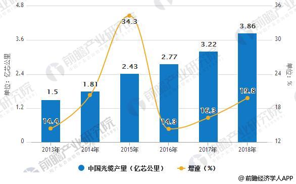 2013-2018年中國光纖光纜產量統(tǒng)計及增長情況預測