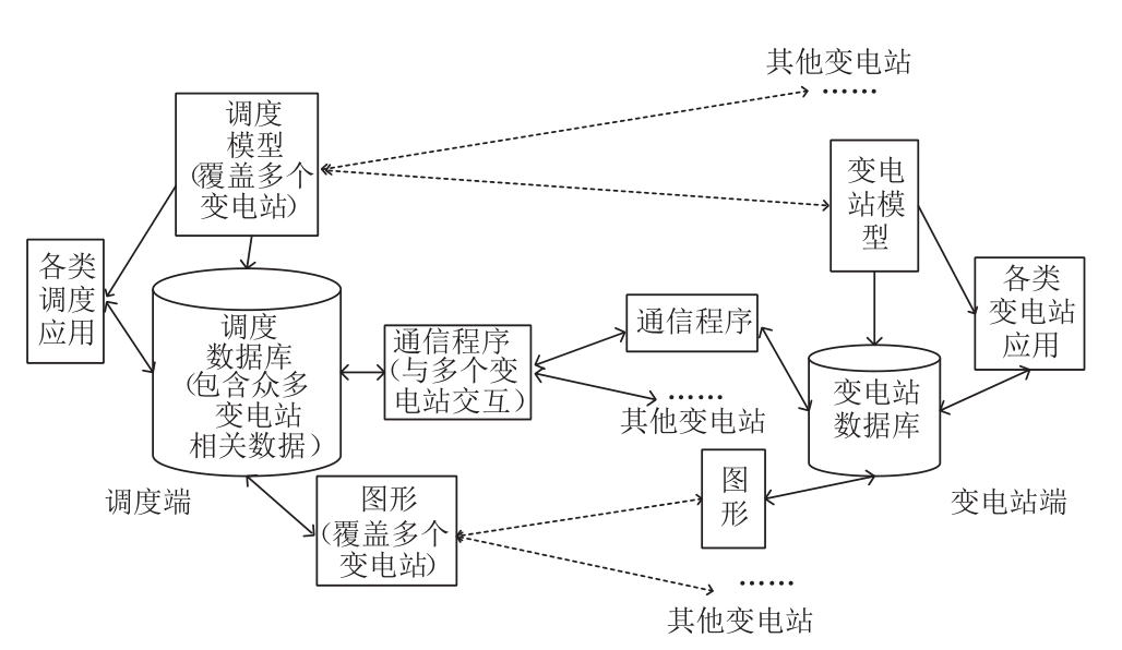 調(diào)度和變電站自動(dòng)化系統(tǒng)之間存在著復(fù)雜的相互聯(lián)系:1)兩者間有許多業(yè)務(wù)是重疊的,例如建模、數(shù)據(jù)維護(hù)、監(jiān)控業(yè)務(wù)、保護(hù)管理等,這影響了總體集約性;2)為了保證業(yè)務(wù)重復(fù)部分的一致性,增加了很多中間環(huán)節(jié)和步驟,突出體現(xiàn)在通信點(diǎn)表的維護(hù)和處理上;3)兩者間存在著復(fù)雜的模型、數(shù)據(jù)、指令和系統(tǒng)互動(dòng)關(guān)系;4)系統(tǒng)和業(yè)務(wù)的分割限制了自動(dòng)化系統(tǒng)的智能化發(fā)展。