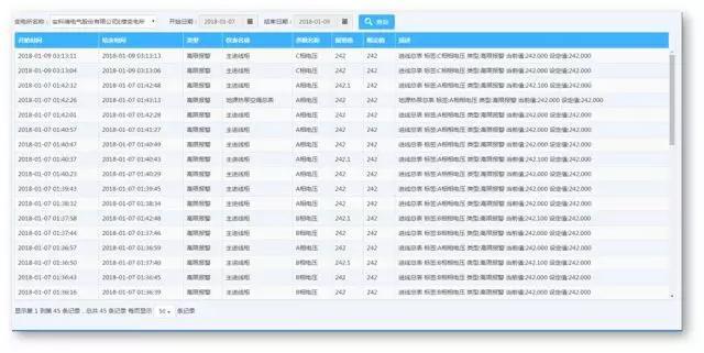 遙測越限事件可查詢某變電所內(nèi)某段時間的各類遙測越限事件(電壓、電流、功率等);