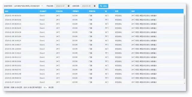 遙信事件可查詢某變電所內(nèi)某段時間的各類遙信事件(開關(guān)分合閘、水浸、開關(guān)門、煙霧等);