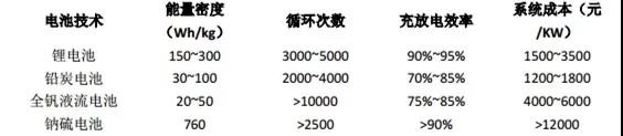 電池儲(chǔ)能技術(shù)分類及性能比較
