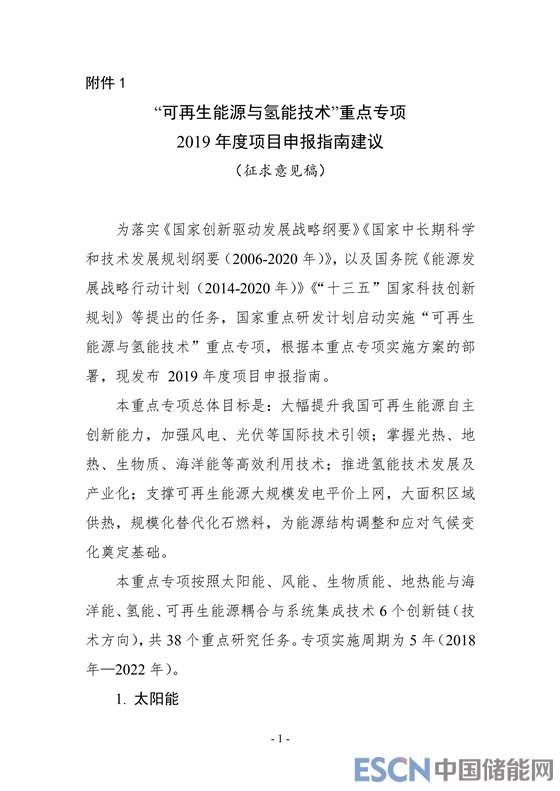 12月6日,科技部高新司發(fā)布《關于對國家重點研發(fā)計劃高新領域可再生能源與氫能技術等9個重點專項 2019年度項目申報指南建議征求意見的通知》。