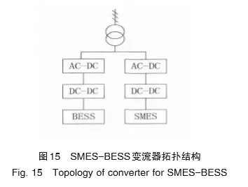 風(fēng)力發(fā)電存在不連續(xù)、不穩(wěn)定的特點(diǎn),直接并網(wǎng)會(huì)造成電壓閃變、功率頻率波動(dòng)等不良影響。同時(shí),風(fēng)電場(chǎng)必須具備低電壓穿越(lowvoltageridethrough,LVRT)能力,以消除潛在的安全隱患。研究表明,SMES-BESS在穩(wěn)定電壓波動(dòng)、平抑風(fēng)電功率波動(dòng)及提高低電壓穿越能力方面具有重要作用。圖15為SMES-BESS變流器的拓?fù)浣Y(jié)構(gòu)。