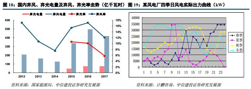 棄風(fēng)、棄光問題掣肘可再生能源的進(jìn)一步發(fā)展。 由于可再生能源電力的發(fā)電量受季節(jié)和天氣條件的影響而波動(dòng)性較大,且與穩(wěn)定的用電需求不完全匹配,容易導(dǎo)致電網(wǎng)頻率波動(dòng)較大,為滿足用戶側(cè)負(fù)荷的需求,且減少電網(wǎng)頻率波動(dòng),經(jīng)常會(huì)產(chǎn)生棄風(fēng)、棄光現(xiàn)象,導(dǎo)致新能源利用率偏低。 2017 年全國(guó)棄風(fēng)、棄光電量分別達(dá)到419、 73 億千瓦時(shí),棄風(fēng)率 12%、棄光率 6%。 2017 年政府工作報(bào)告中首次提出要有效緩解棄風(fēng)、棄光狀況; 11月發(fā)改委、國(guó)家能源局發(fā)布《解決棄水棄風(fēng)棄光問題實(shí)施方案》,要求到 2020 年在全國(guó)范圍內(nèi)有效解決棄風(fēng)棄光問題。