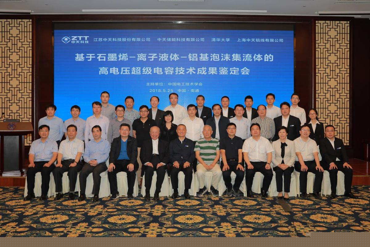 5月25日,由中國電工技術(shù)學(xué)會組織的“基于石墨烯-離子液體-鋁基泡沫集流體的高電壓超級電容技術(shù)”成果鑒定會在江蘇南通召開。該技術(shù)由中天科技和清華大學(xué)化學(xué)工程系聯(lián)合開發(fā),經(jīng)過質(zhì)詢和討論,以楊裕生院士為首的鑒定專家組認為“該技術(shù)達到國際領(lǐng)先水平”。