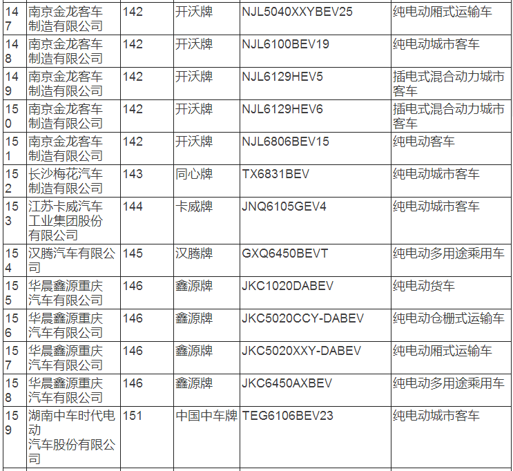 新能源汽車推廣應(yīng)用推薦車型目錄(2017年第8批)