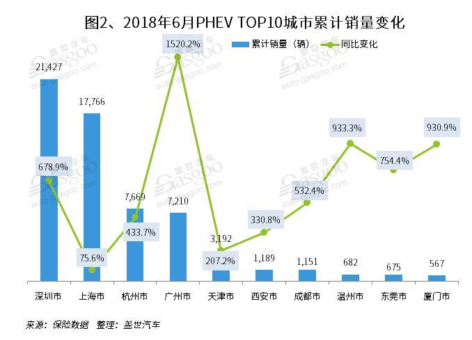 據(jù)蓋世汽車研究院整理的數(shù)據(jù),2018年6月,新能源乘用車市場(chǎng)銷量61,692輛同比上升123.1%;累計(jì)銷量同比上升210.4%至268,292輛,其中純電車189,335輛同比增長(zhǎng)182%,插混78,957輛同比增長(zhǎng)308%。