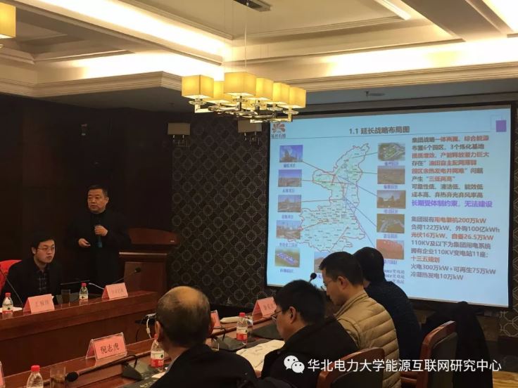 圖為華北電力大學能源互聯(lián)網(wǎng)研究中心副主任劉敦楠副教授代表報告編制單位進行兩個項目的可行性研究匯報