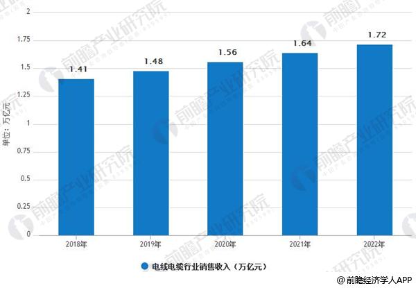 2018-2022年中國(guó)電線電纜行業(yè)銷售收入情況及預(yù)測(cè)