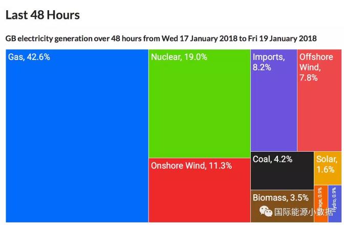根據(jù)mygridgb.co.uk的數(shù)據(jù),2012年英國電力消費318TWh(3180億千瓦時)中煤電占43.2%的絕對優(yōu)勢,天然氣發(fā)電占26.1%,核電占20.8%,風電占4%,大水電占1%,生物質(zhì)發(fā)電占0.7%,進口占4.3%。
