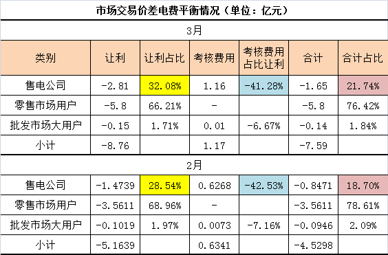 3月出清價(jià)格-0.189元/千瓦時(shí),導(dǎo)致考核費(fèi)用大幅提高,每度電考核費(fèi)用增幅32.81%,更容易導(dǎo)致小體量售電公司虧損,售電公司之間的盈虧水平進(jìn)一步拉大。
