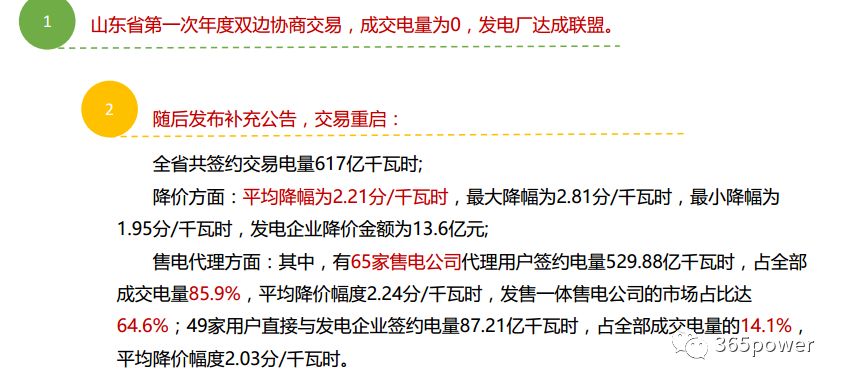 山東電力市場在2017年長協(xié)第一次交易時,由于某些原因沒有順利開展,最后由政府出面干涉,使得交易重啟并簽約617億千瓦時。
