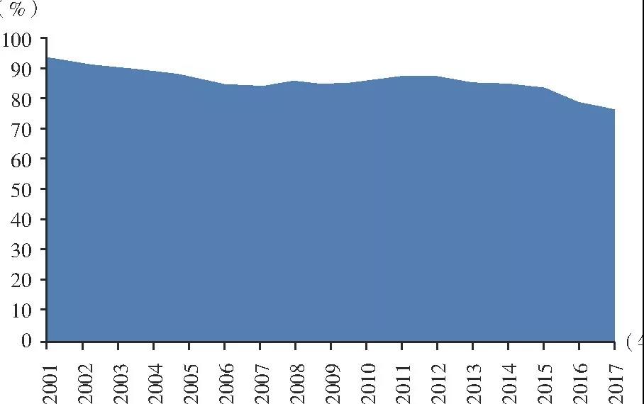 圖3 2007—2017年我國一次能源消費(fèi)結(jié)構(gòu)變化