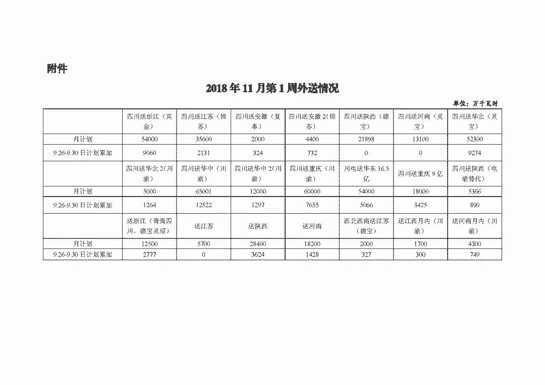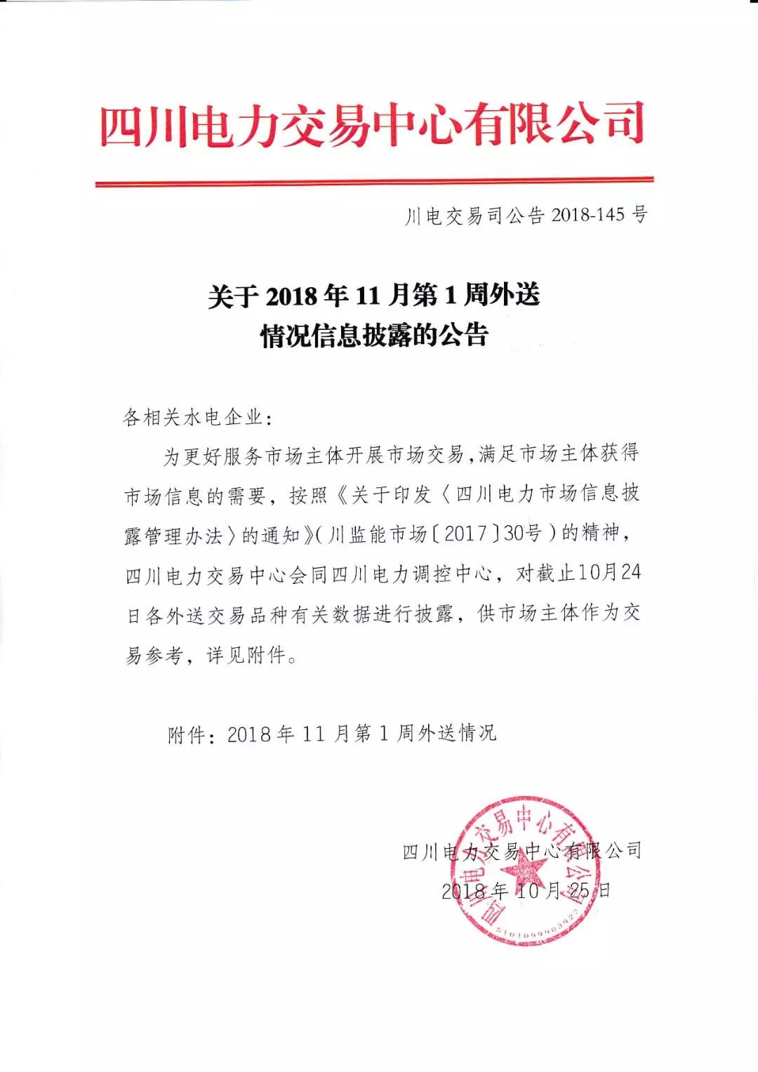 公告 | 四川關(guān)于2018年11月第1周外送情況信息披露的公告
