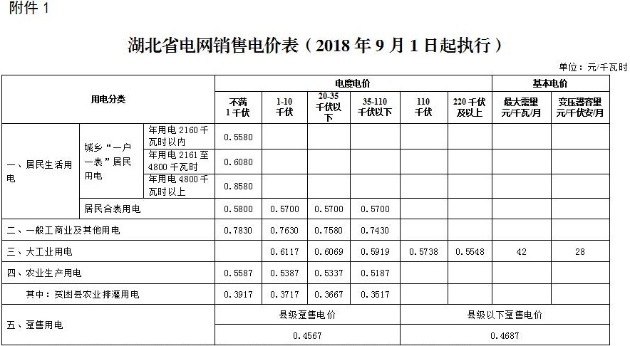 附件:1.湖北省電網(wǎng)銷售電價表(2018年9月1日起執(zhí)行)