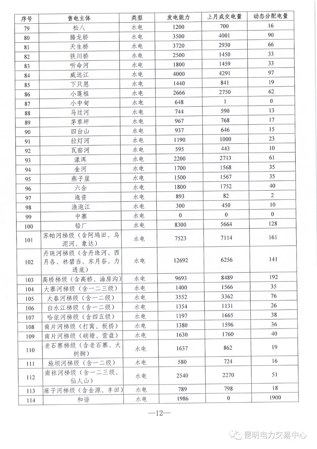 云南2018年10月電力市場化交易信息披露