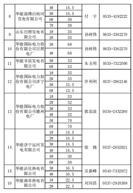 華能山東發(fā)電有限公司、華電山東公司、國電山東電力有限公司、大唐山東發(fā)電有限公司、華潤電力華東大區(qū),有關(guān)企業(yè):