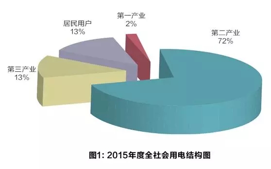 目前全社會(huì)電力市場用戶類型分為四類,根據(jù)2015年國家能源局統(tǒng)計(jì)的全國用電結(jié)構(gòu):第一產(chǎn)業(yè)用戶(農(nóng)、林、畜牧業(yè)等)用電量占比約2%;第二產(chǎn)業(yè)用戶(加工、制造業(yè)等)用電量占比72%;第三產(chǎn)業(yè)用戶(商業(yè)、交通、服務(wù)業(yè)等)用電量占比13%;城鄉(xiāng)居民用戶用電量占比13%。