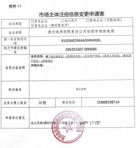 現(xiàn)特進(jìn)行公示,公示期為10個(gè)工作日。公示期滿且無(wú)異議則變更信息即可生效。如有異議,可在公示期內(nèi)向貴州電力交易中心反映。