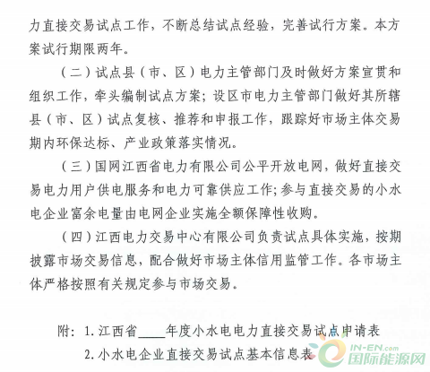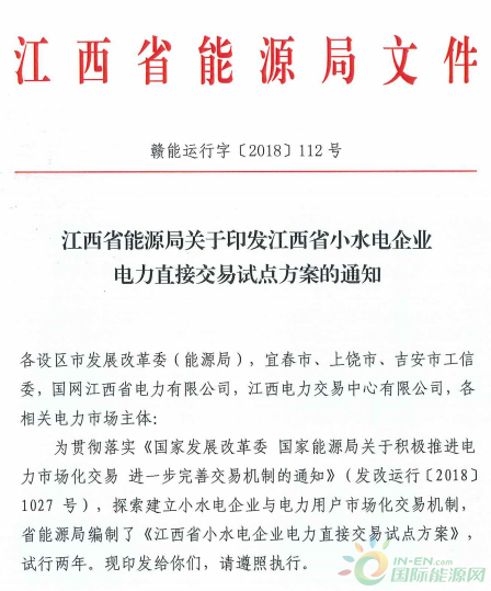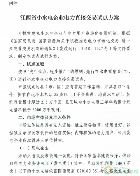 江西省印發(fā)小水電企業(yè)電力直接交易試點(diǎn)方案