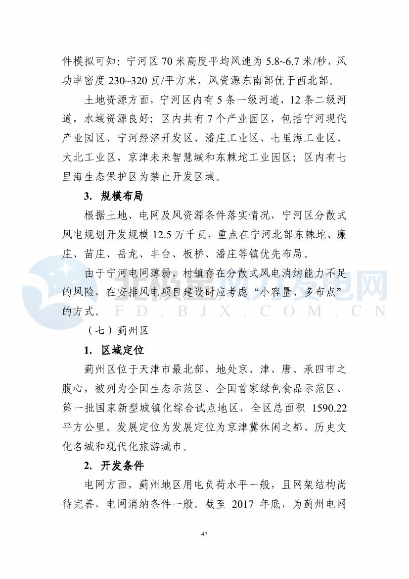5、靜海區(qū)總體具備分散式風(fēng)能資源利用條件,可視具體接 網(wǎng)條件及土地利用要求,根據(jù)區(qū)域規(guī)劃實(shí)際和發(fā)展需要適時(shí) 46 開發(fā),預(yù)留開發(fā)規(guī)模 4.5 萬千瓦。