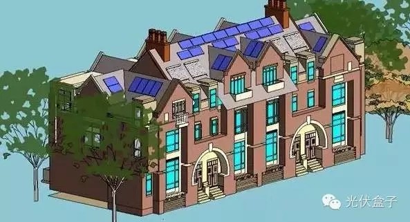 民用分布式項(xiàng)目的設(shè)計(jì)需要在前期工作中完成屋頂勘測(cè)和相關(guān)信息的收集,并給業(yè)主提供初步的設(shè)計(jì)方案或屋頂發(fā)電效果圖,效果圖的作用一方面可以從側(cè)門(mén)說(shuō)明專(zhuān)業(yè)設(shè)計(jì)能力,另一方面可以非常直觀地為業(yè)主展示組件的布置形式和實(shí)時(shí)陰影情況,如圖1和圖2為混凝土屋頂支架安裝和組件敷設(shè)效果圖,圖3為筆者基于CAD圖紙而繪制的南京地區(qū)別墅分布式發(fā)電系統(tǒng)的組件布置效果圖,然而大多數(shù)別墅屋頂?shù)臉I(yè)主可能沒(méi)有屋頂平面和立面圖紙,這種情況下我們只需把握屋頂?shù)恼w尺寸,細(xì)節(jié)的部分化繁為簡(jiǎn)。對(duì)于民用系統(tǒng)設(shè)計(jì)人士,本人還是強(qiáng)烈推薦使用SketchUp,因?yàn)樵谛Ч麍D制作和陰影分析上較為出色。