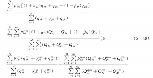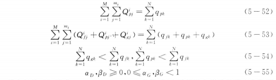 約束條件還包括式(5-45)-(5-49)。此外,還應(yīng)滿足發(fā)電系統(tǒng)的穩(wěn)定性運(yùn)行條件及機(jī)組的技術(shù)最大最小出力限制。