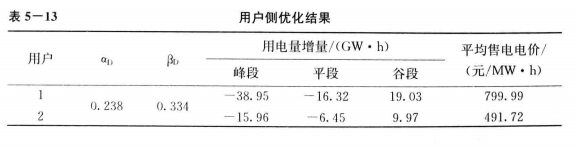 (2)優(yōu)化結(jié)果。應(yīng)用Matlab遺傳算法編程求解本節(jié)所建立的優(yōu)化模型。發(fā)電側(cè)及用戶側(cè)優(yōu)化結(jié)果分別參見表5 -13、表5-14。