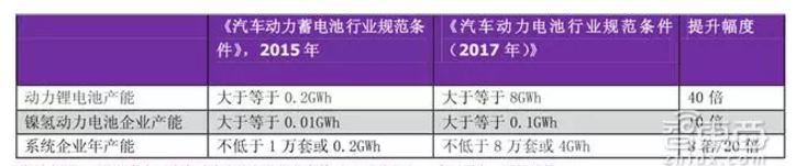新規(guī)《汽車動力電池行業(yè)規(guī)范條件(2017年)》對企業(yè)產(chǎn)能要求大幅提升