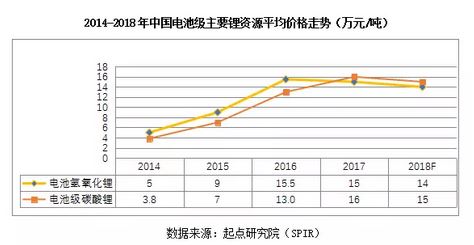 隨著動力電池市場爆發(fā),碳酸鋰價格開始大幅上漲,2016-2017年鋰電池碳酸鋰價格一路走高,最高價位接近20萬元/噸。從2017全年平均值來看,也達到了16萬元/噸。