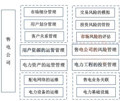 電力資產的管理側重于對配電網(wǎng)絡的運行維護(部分售電公司)和電力設備的運營管理;電力工程的投資管理則主要圍繞售電側業(yè)務開展過程中部分電力基礎設施的投資和建設工作;風險管理則側重于市場風險的評估,投資風險的管控以及交易風險的模擬等,其具體情況如圖1-3所示: