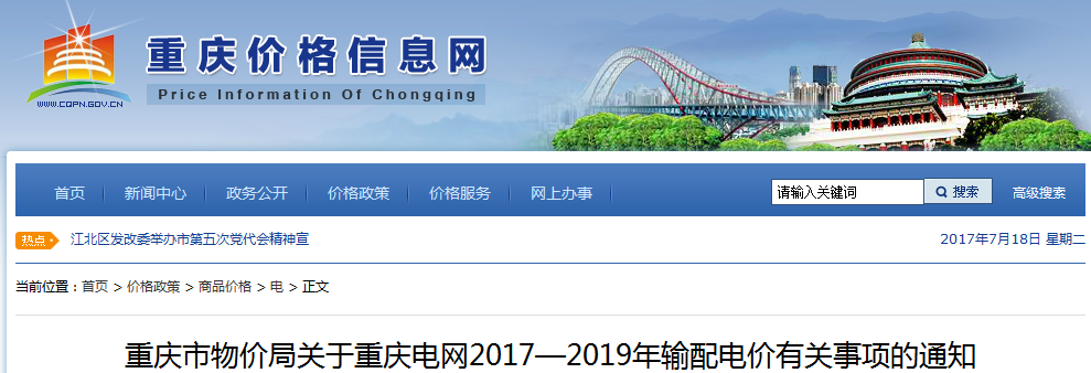 根據(jù)國家發(fā)展改革委輸配電價改革的統(tǒng)一部署,經(jīng)審核,現(xiàn)將重慶電網(wǎng)2017—2019年輸配電價有關(guān)事項通知如下: