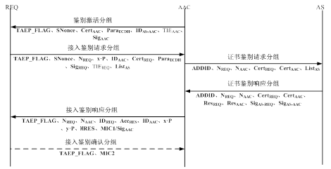 AAC正確處理AS發(fā)送的證書鑒別響應(yīng)分組后,構(gòu)造接入鑒別響應(yīng)分組發(fā)送給REQ。