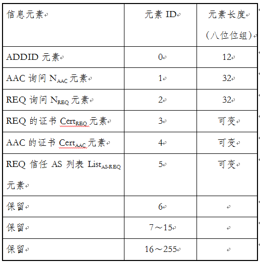表4 證書鑒別請求分組有效元素集合