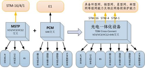 光電一體化設(shè)備是通信設(shè)備廠家針對專網(wǎng)行業(yè)尤其是電力行業(yè)通信專網(wǎng)的具體需求,以SDH技術(shù)與PCM技術(shù)為核心,將PCM與MSTP功能集成在一個設(shè)備上,早期的光電一體化產(chǎn)品有兩種設(shè)備硬件演進(jìn)方案: