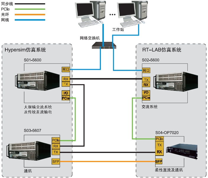 HYPERSIM為交直流電網(wǎng)仿真提供了全方面的解決方案,包含了FACTS、SVC、STATCOM、MMC、HVDC等各電網(wǎng)系統(tǒng)。HYPERSIM實(shí)時(shí)仿真器由使用最新Intel Xeon處理器的CPU仿真器和Xilinx FPGA仿真器組成,CPU仿真器作為大規(guī)模復(fù)雜電力系統(tǒng)電磁暫態(tài)仿真并行處理仿真計(jì)算,F(xiàn)PGA仿真器計(jì)算微妙級以下的高頻電力電子器件仿真,同時(shí)用作連接外部設(shè)備與CPU仿真器之間的接口單元。